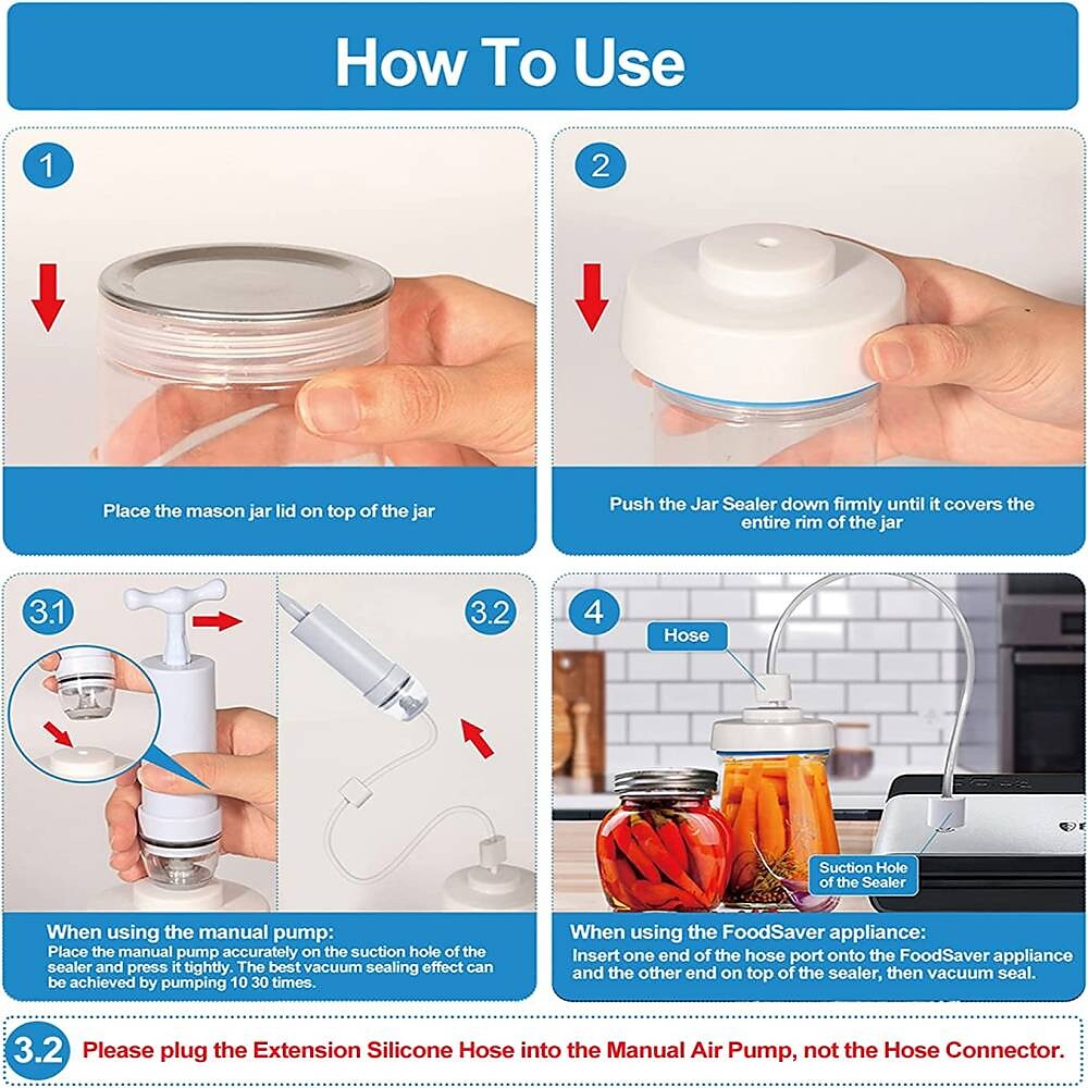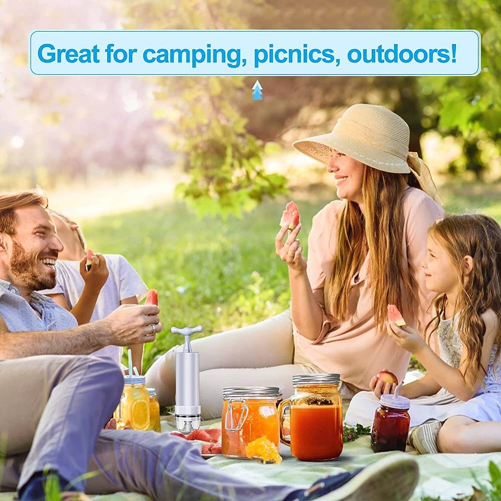 Convenient hand-pump for sealing jars without using vacuum sealer machine, which is lightweight and easier to carry. It is travel-friendly and makes a great option for outdoor cooking to store food.