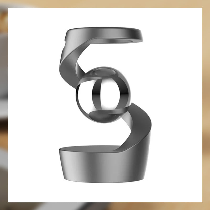 En tilsynelatende svevende kule fanget inne i en kontinuerlig flytende heliks.