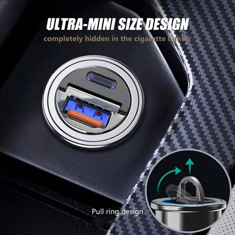 The 2022 New Pull Ring Design Mini Car Adapter 30W Super Fast Charge Car Charger.