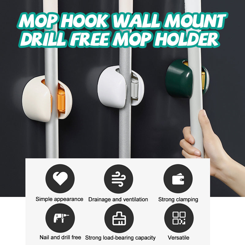 1 x Mop Hook Wall Mount Drill Free Mop Holder
