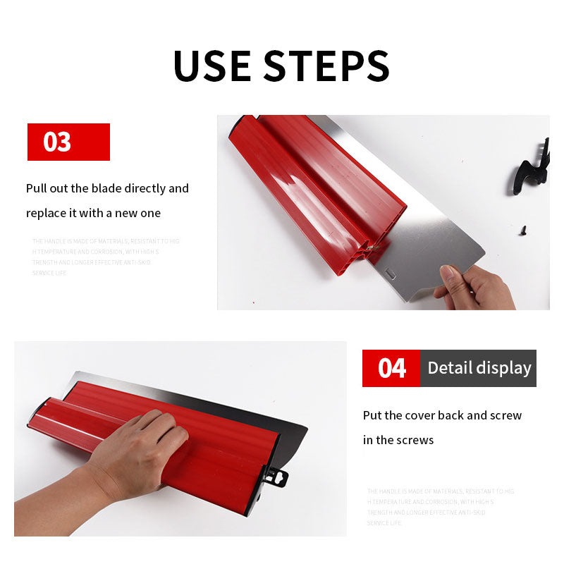 This skimming blade is ideal for smoothing and finishing walls and ceilings with minimal lap marks. It can be used on drywall mud, plaster and other wall finishing compounds with professional results.