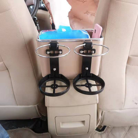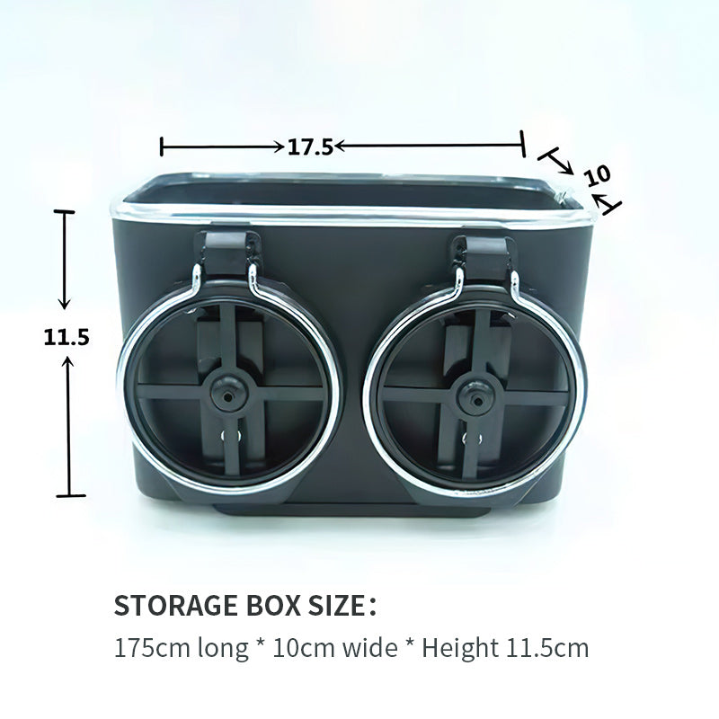 The multifunctional car storage box is equipped with 2 foldable cup holders, You can use the cup holder to place your cups and stack the cup holder up when not in use to save space.