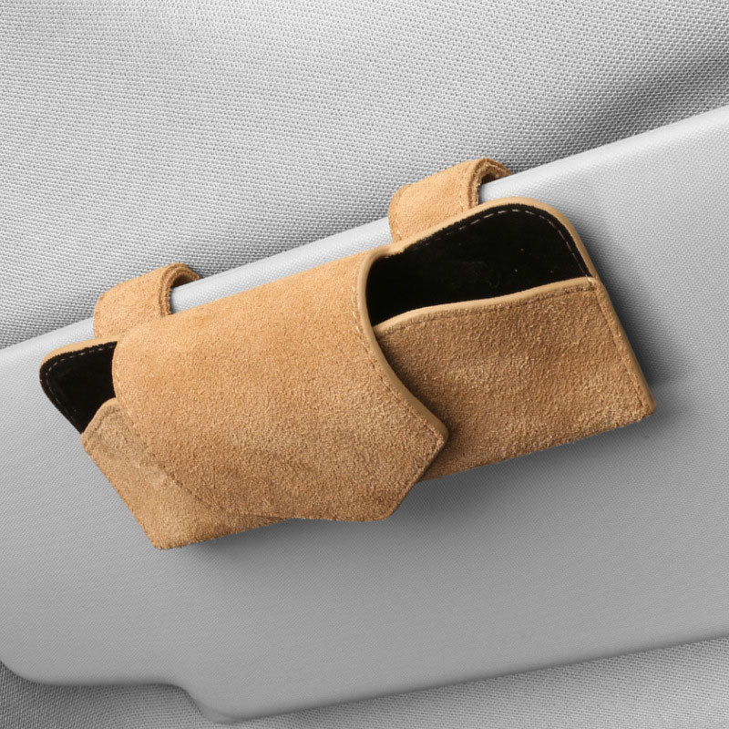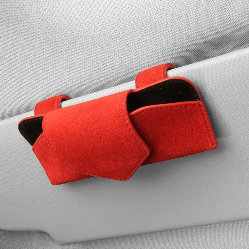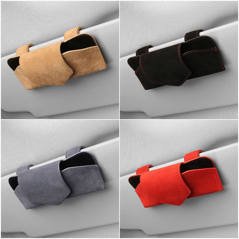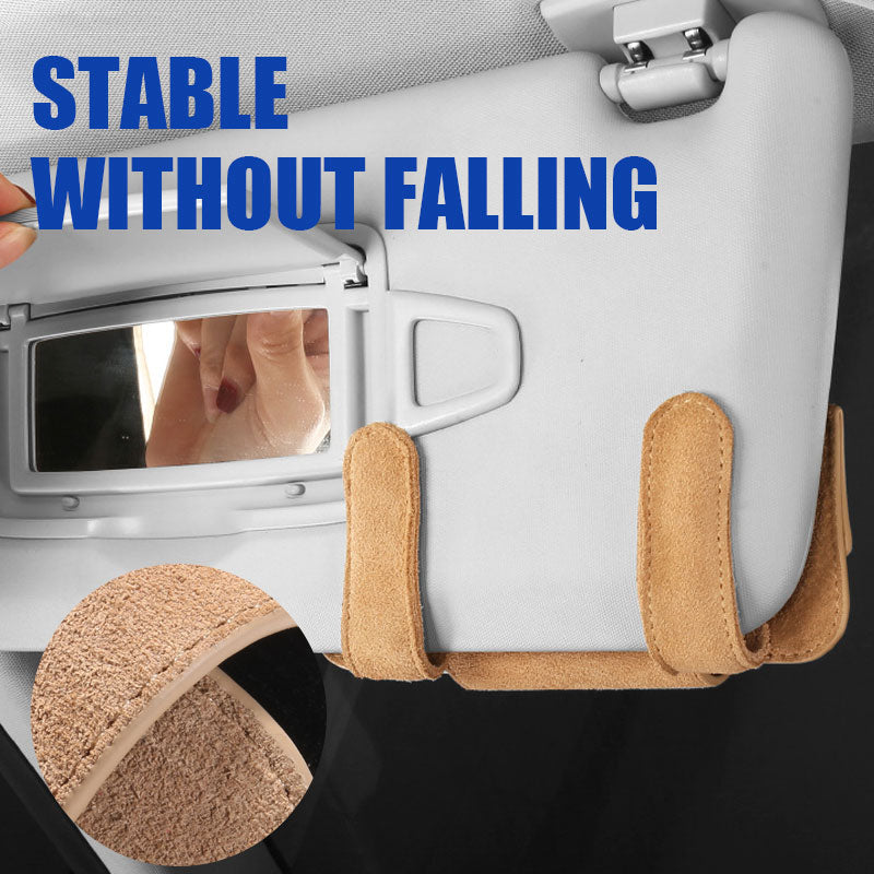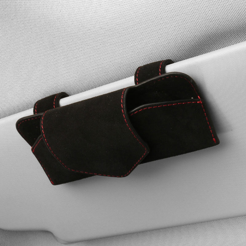 Vegan Leather: The car sunglasses stand is made of high-quality vegan leather material with a diamond-textured surface and a velvet interior material resistant to heat and impact to prevent scratches.
