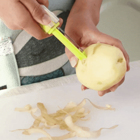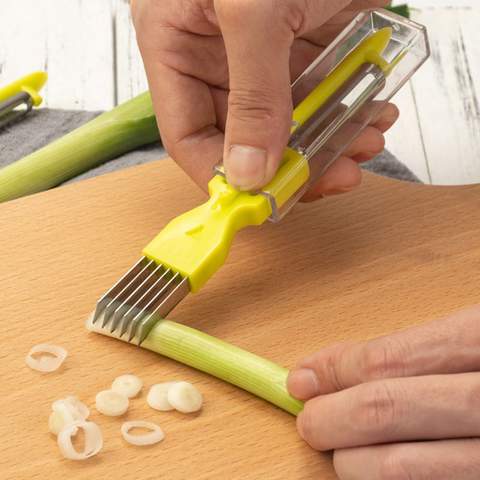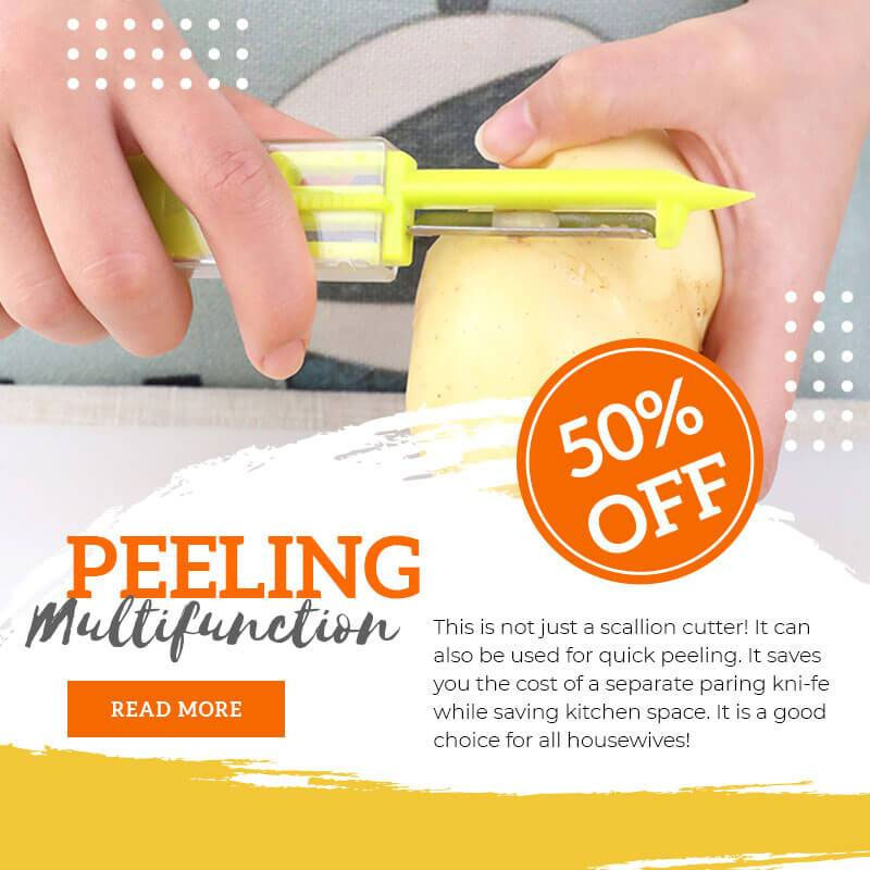 This is not just a scallion cutter!It can also be used for quick peeling. It saves you the cost of a separate paring kni-fe while saving kitchen space. It is a good choice for all housewives!