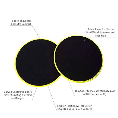 Small-sized disc gliders are easy to carry around and use everywhere - home, vacation, office, friend's house, indoor or outdoor, can be used on both carpeted and hardwood floors. The lightweight slider bundle can be stored in small spaces, making it the perfect exercise equipment.