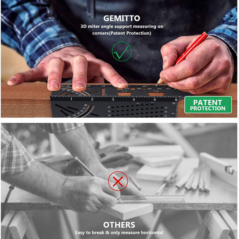 3D Woodworking Carpenter Mitre Square Ruler, Multifunction Angle Finder Woodworking Measure Tools.