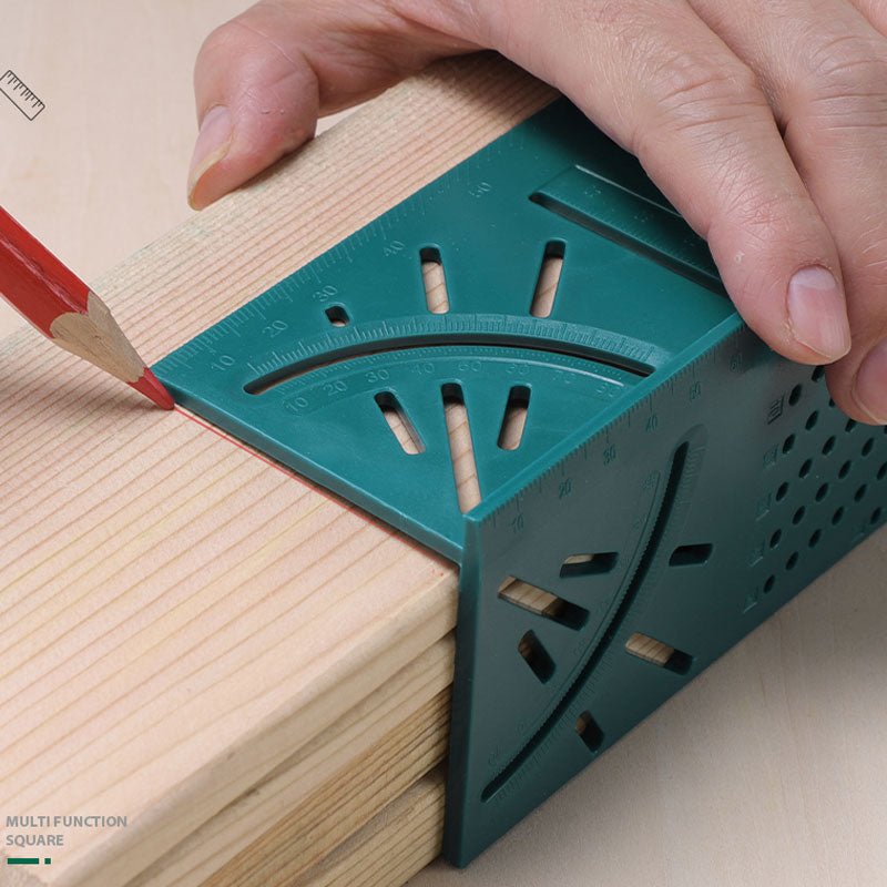 Multifunctional 3D carpenter square has many functions which are: Circular Hole, Parallel Line, Vertical Line, Drilling Positioning, T-shaped Scribe, 0~90¡ã Angle.