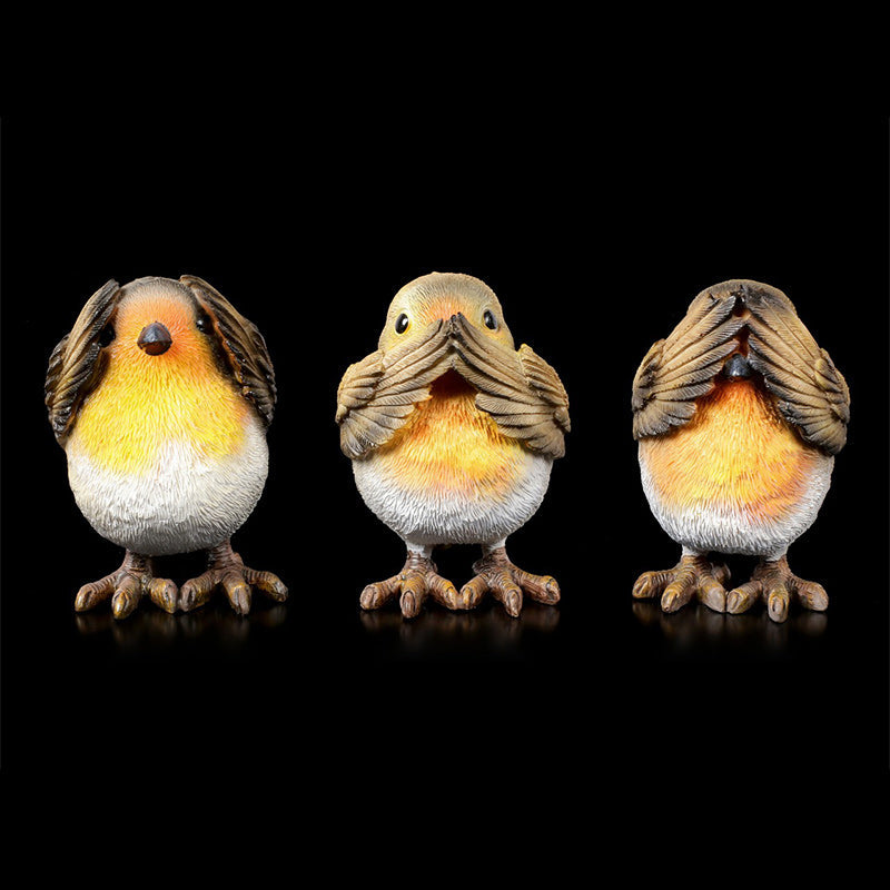 Set of 3 Three Wise Robin Figurines, Resin Figurine Statue Decorative Ornaments, Hear No Evil See No Evil Speak No Evil Do No Evil Statue, Car Home Desk Shelf Decor Gift.