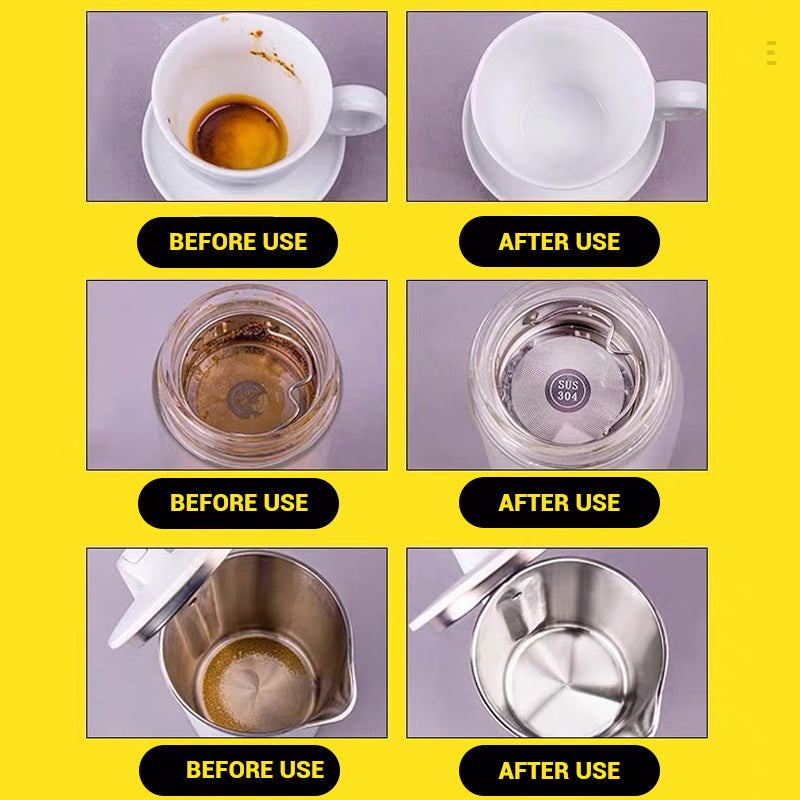 For tea enthusiasts, your tea cups are like cherished friends, and keeping them in pristine condition is a must. Our effervescent tablets are specially designed to address the common issues tea drinkers face, such as tea stains, mineral deposits, and unwanted odors. With these tablets, you can effortlessly maintain your tea cups, teapots, and other teaware. 🥘🍵