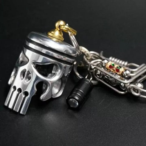 💀This piston-style skull keychain is definitely a unique combination for your motorcycle,They are piston structure polished skull, flashlight and keychain combined together.The skull has a bottle opener design.