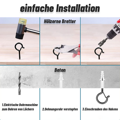 🔗Einfache Installation: Der Haken hat ein einfaches Design und wird mit allem geliefert, was Sie zur Installation benötigen. Sie können ihn in nur wenigen Minuten installieren, ohne dass Spezialwerkzeuge erforderlich sind.