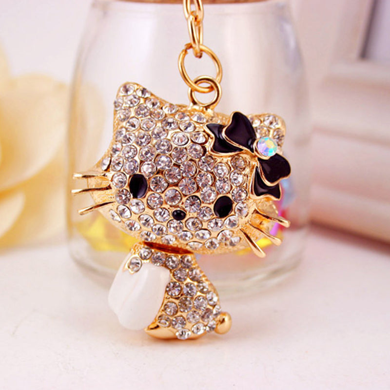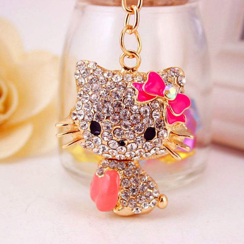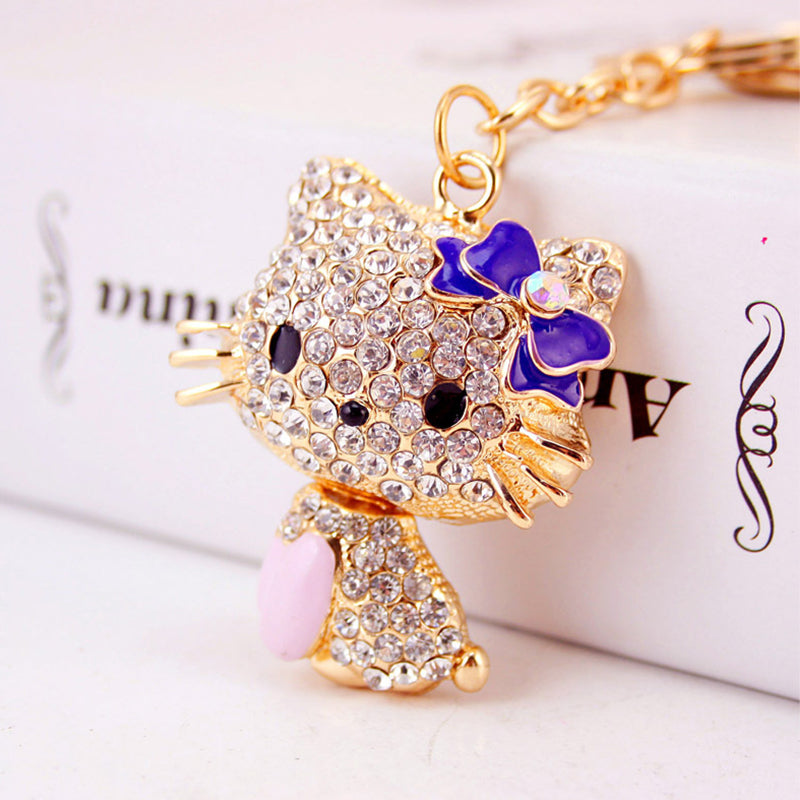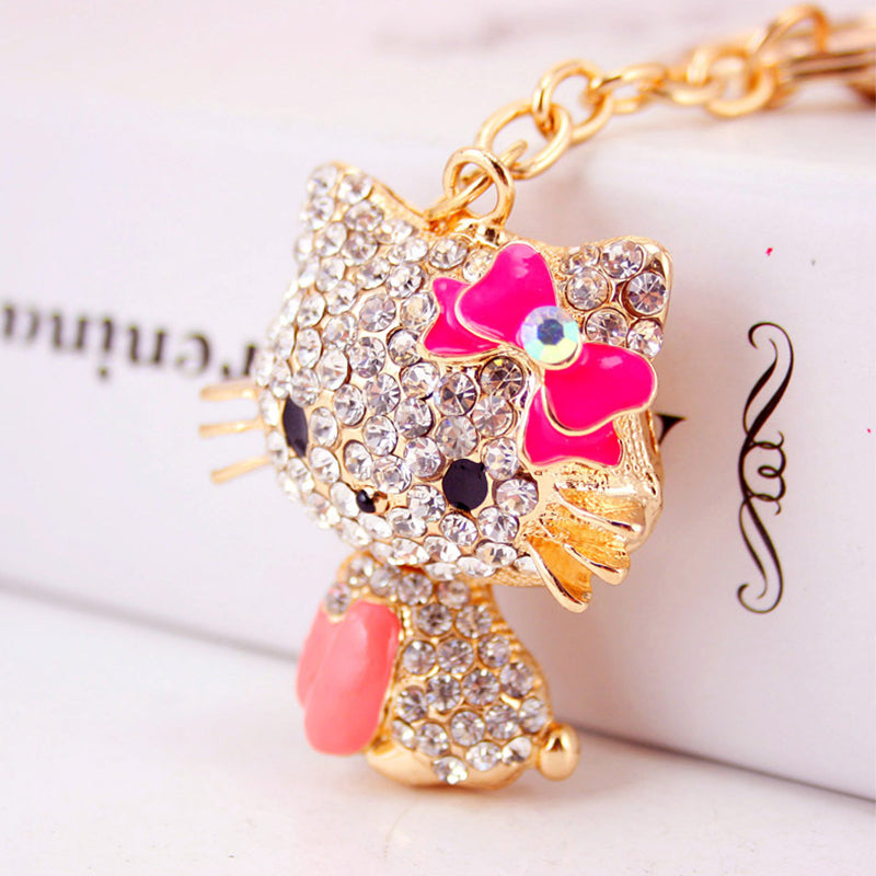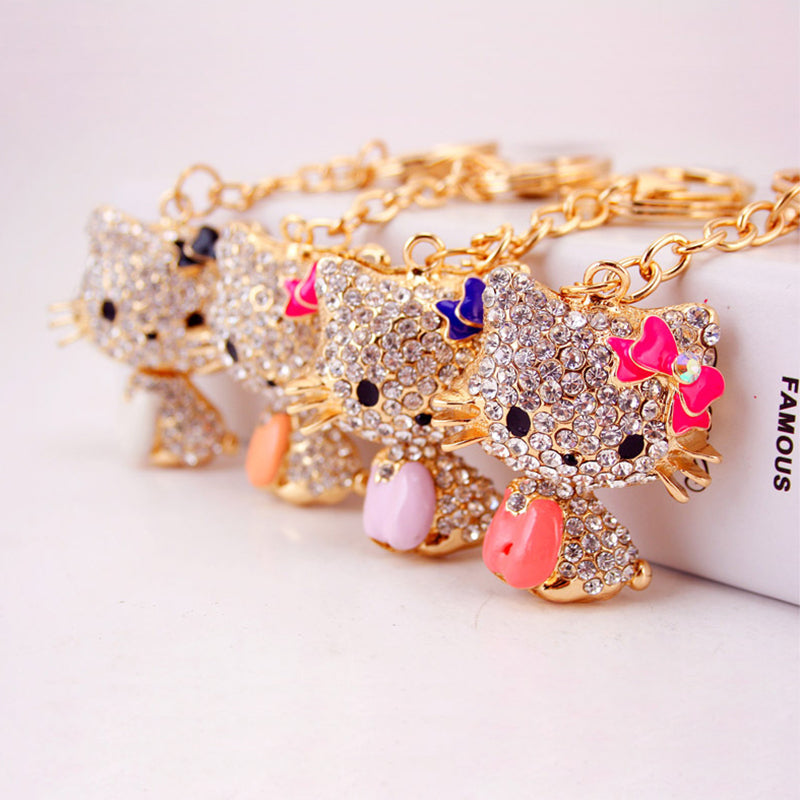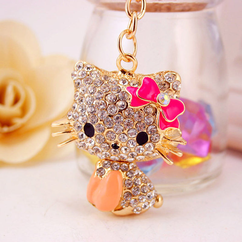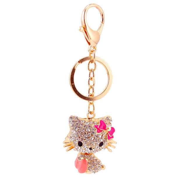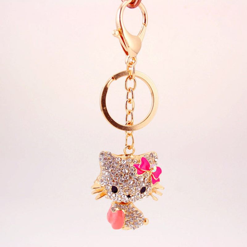Rhinestone Bow Cat Car Keychain