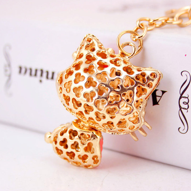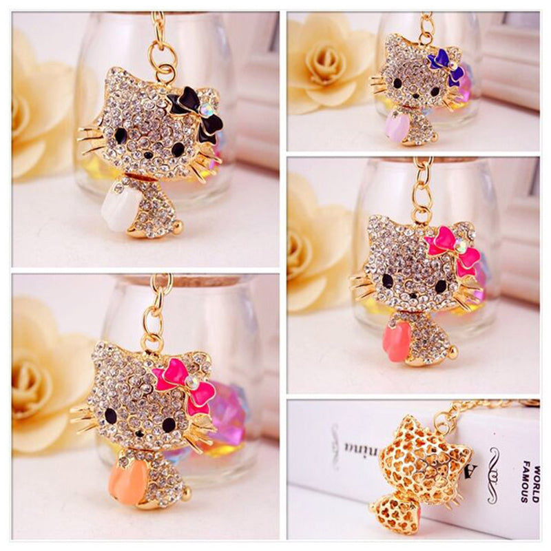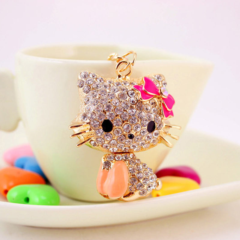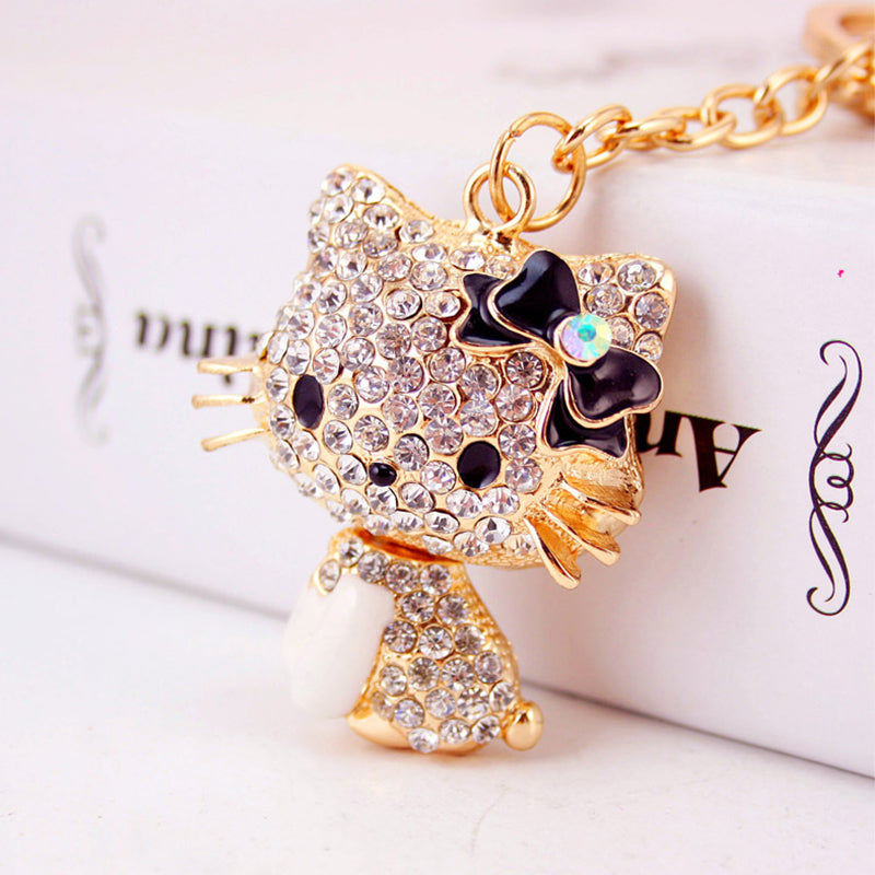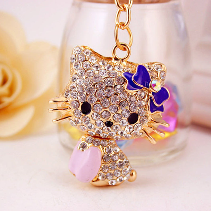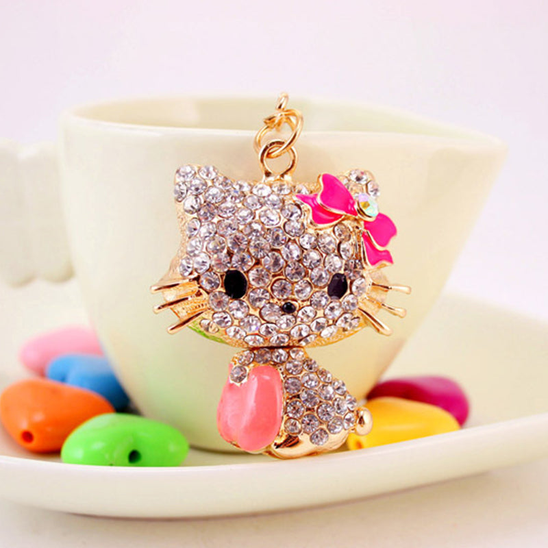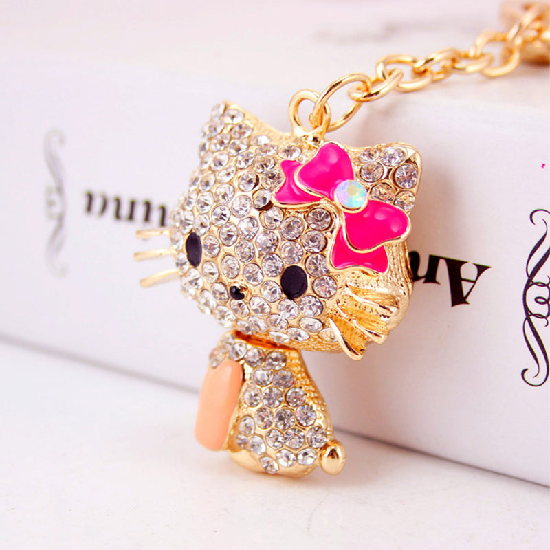 Rhinestone Bow Cat Car Keychain