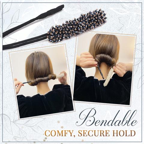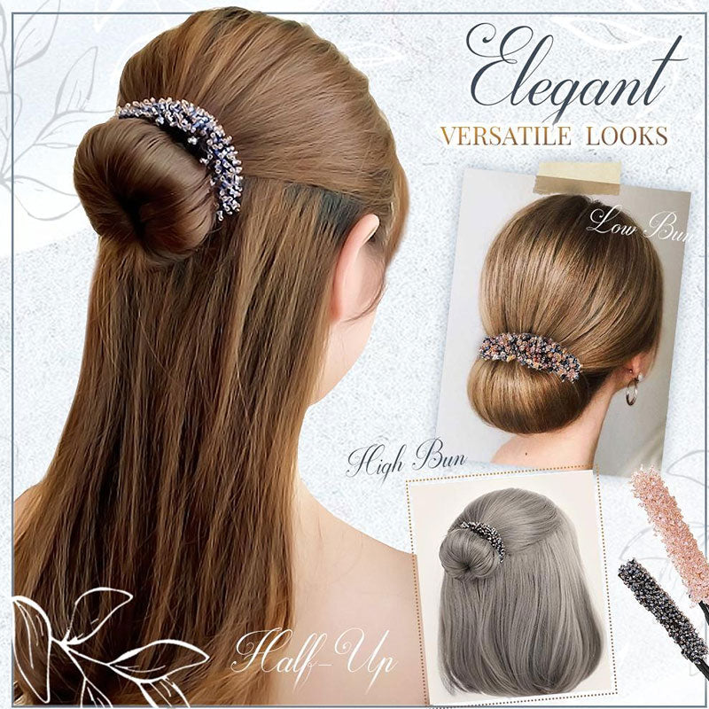 Rhinestone bun maker is a bendable hair tool that holds hair up stylishly all day long. Just clamp your hair with the clip, roll up and bend it into a perfect bun or a romantic up-do in seconds!