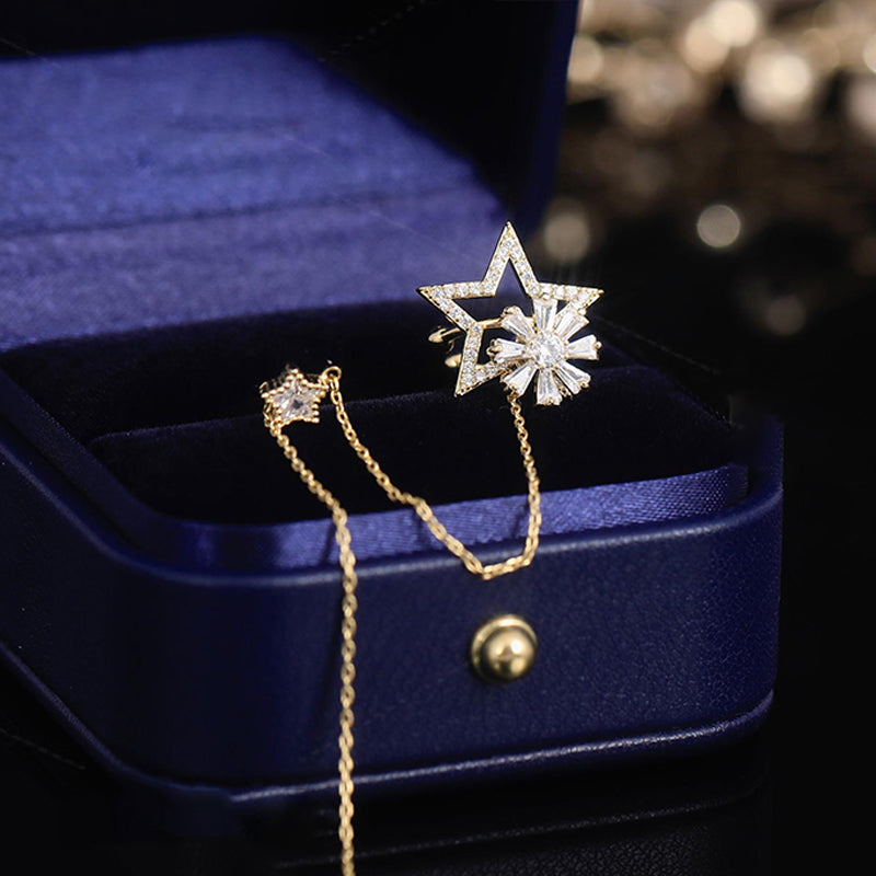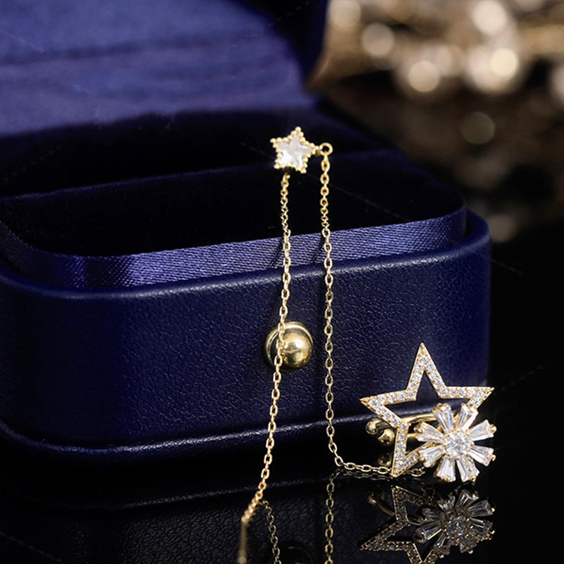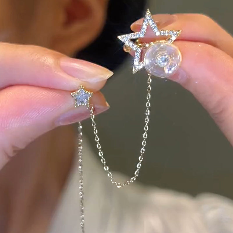 Trendy pierced asymmetric star clip drop earrings. The clip on these track studs is perfect for piercing. 🌼