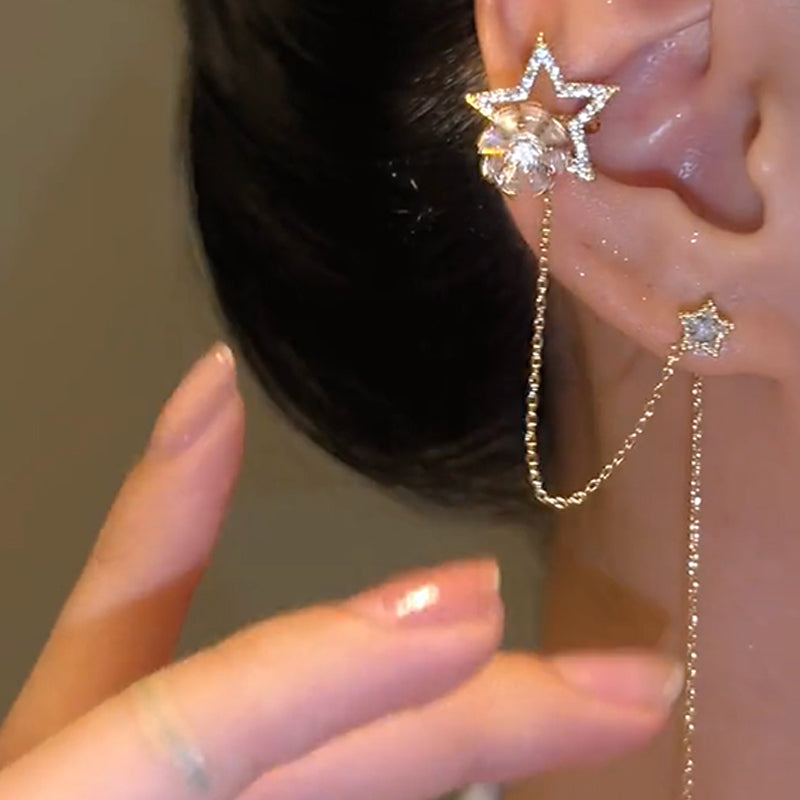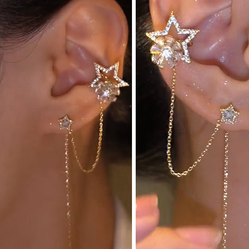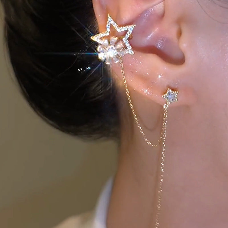 🌟 Cute and unique ear climbers with clear cubic zirconia, elegant huggie dangle earrings for female teen girls. Glittering pentagrams can accentuate your look and catch everyone's eyes at your party.