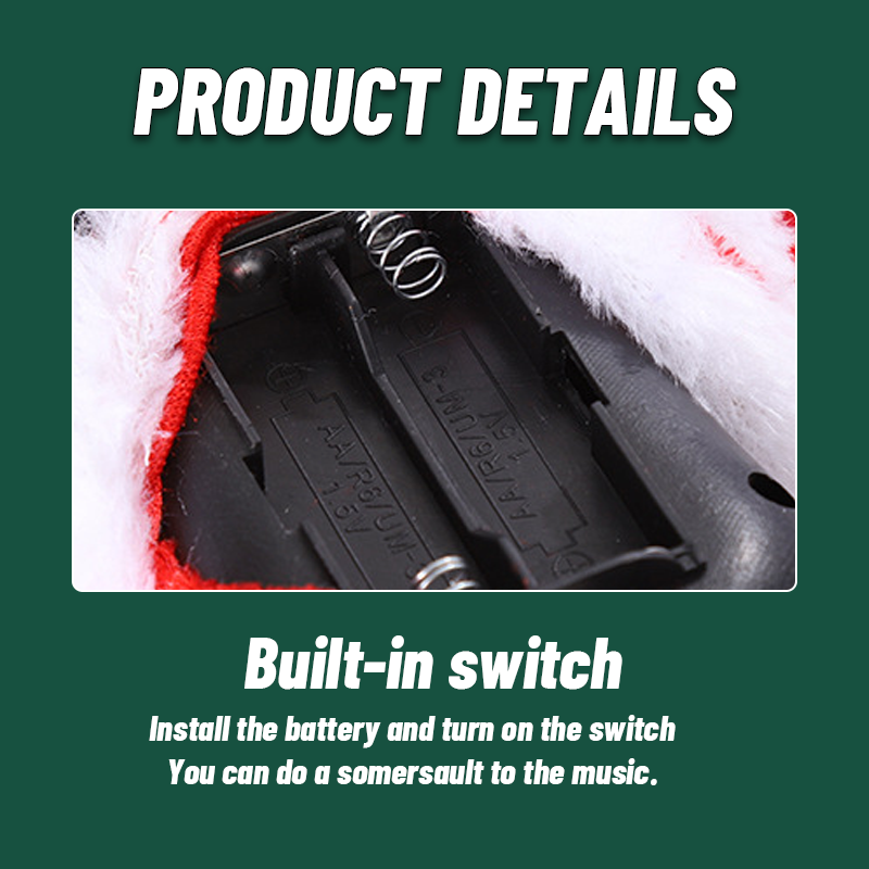 🎵 Holiday Melodies: Get yourself into the holiday spirit by listening to the cheerful tunes played by our electronic somersault Santa Claus. Festive tunes create a warm and inviting atmosphere, perfect for celebrating the season.