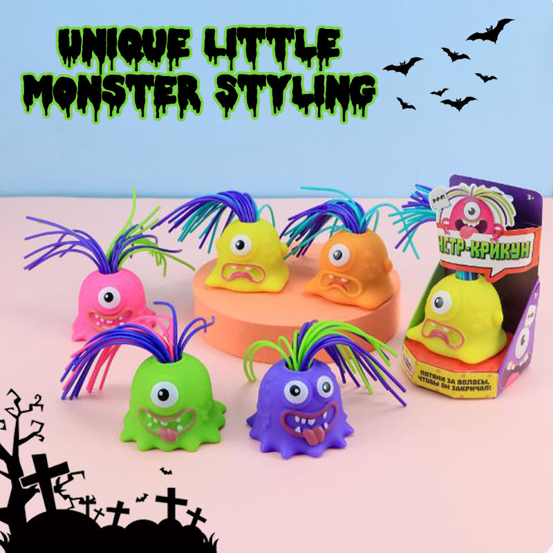 These funny monsters will cheer you up and surprise you with their funny reactions: if you pull their colorful hair, they will scream or sing.