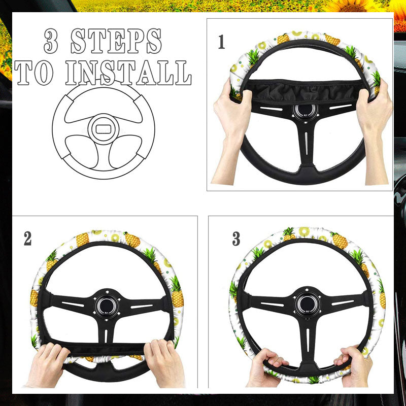 Easy to install and use, no tools required, stretches to fit a standard 14-15" steering wheel. Very easy to clean. Hand wash or machine wash.