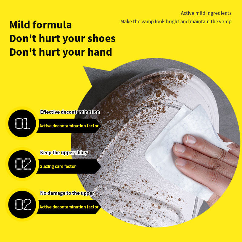CONVENIENT TO USE Disposable wipes. good design box with cover can protect ingredients from damage, you can keep it in travel, office, car or home to clean your shoes whenever you want.