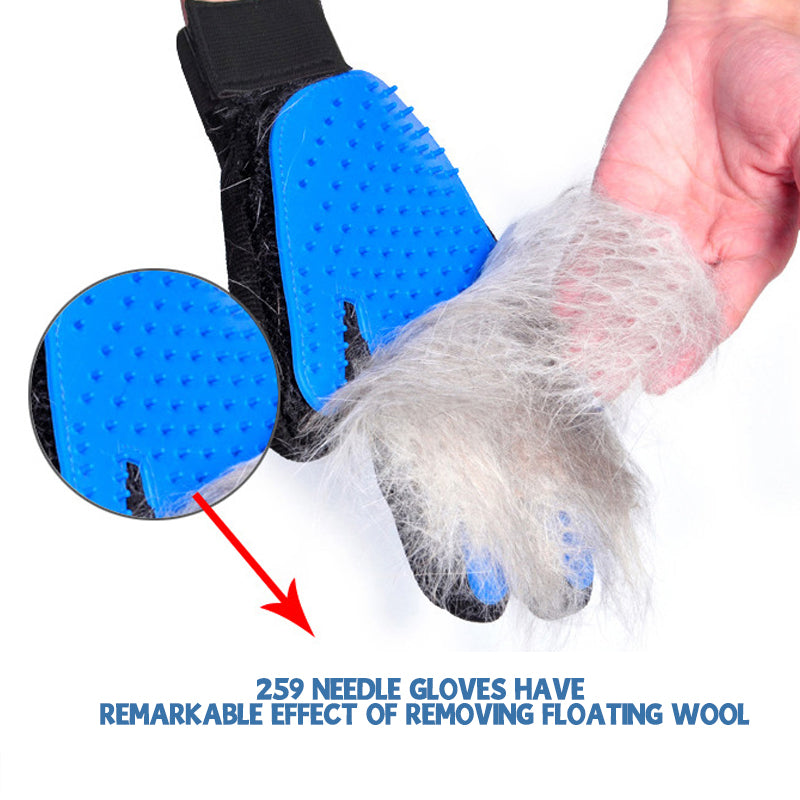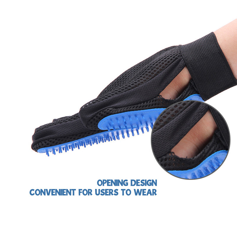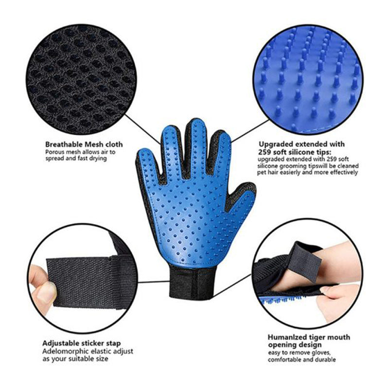 🐾 Left and right hand gloves It includes a soft silicone tip for easy grooming. Hair sticks to gloves and easily flakes and throws away after combing. Wear gloves to keep your house clean and your pets healthy. Skin friendly material.