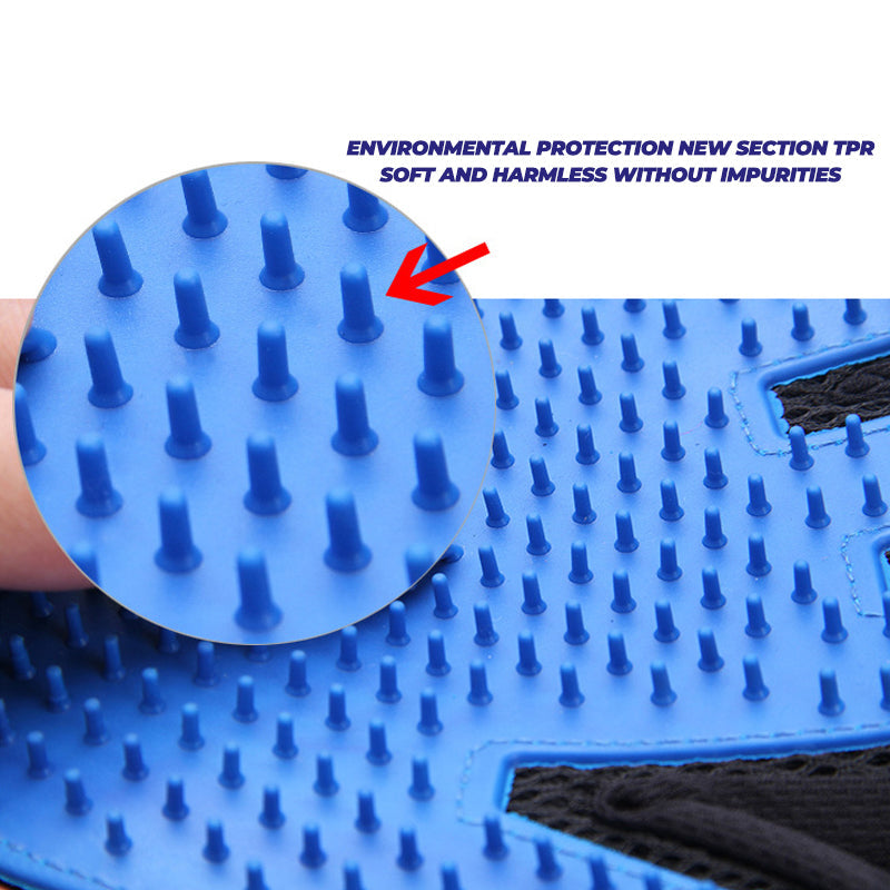 🐾 Skin-friendly material The pet gloves are made of skin-friendly material with asoft rubber surface, which can provide your pet with a comfortable massage without hurting the skin. The back is made of durable and breathable mesh, making it very comfortable to use with gloves.