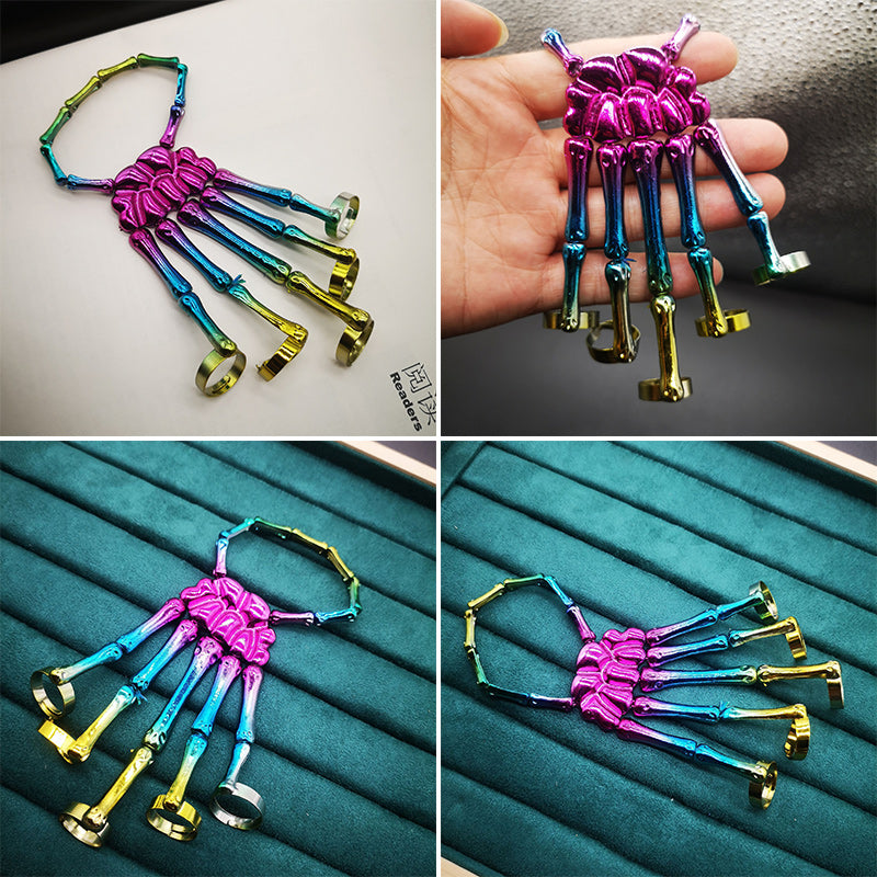 • 💀An incredible idea - a bracelet for the whole arm together with rings! With such a decoration you will definitely not go unnoticed.