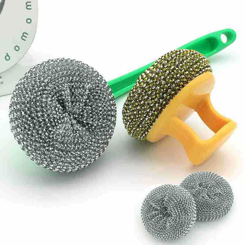 • How to use Cleans easily by rinsing and washing in soapy water. First you can wet the stainless steel washing ball, then add some Detergent, the clean on the rusty place repeatedly. The scourer can help you clean your kitchen pots and pans, etc, widely used in daily life use.