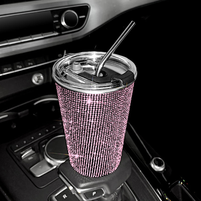 Stainless steel sippy cup studded with rhinestones, this stylish and shiny water bottle will bring your everyday life to the next level!