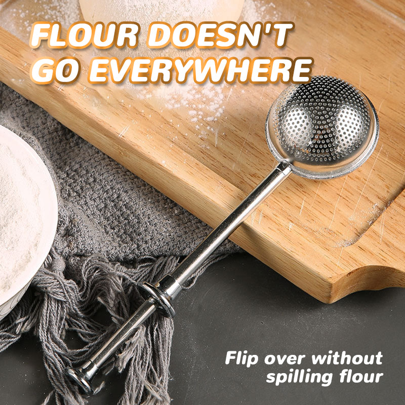 The sturdy half can be easily loaded with flour, powdered sugar, and other spices; you can also place it on the counter as needed during use.