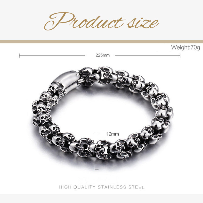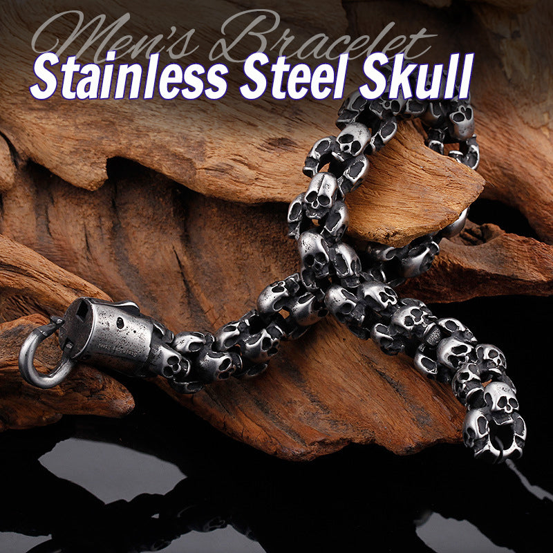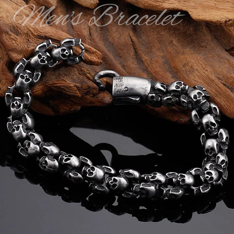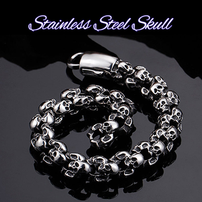 Skull Bracelet for Men's Stainless Steel Cuff Skeleton Stainless Steel Bracelet, Silver bracelet, Men's silver bracelet, Punk, Rock, Wide.