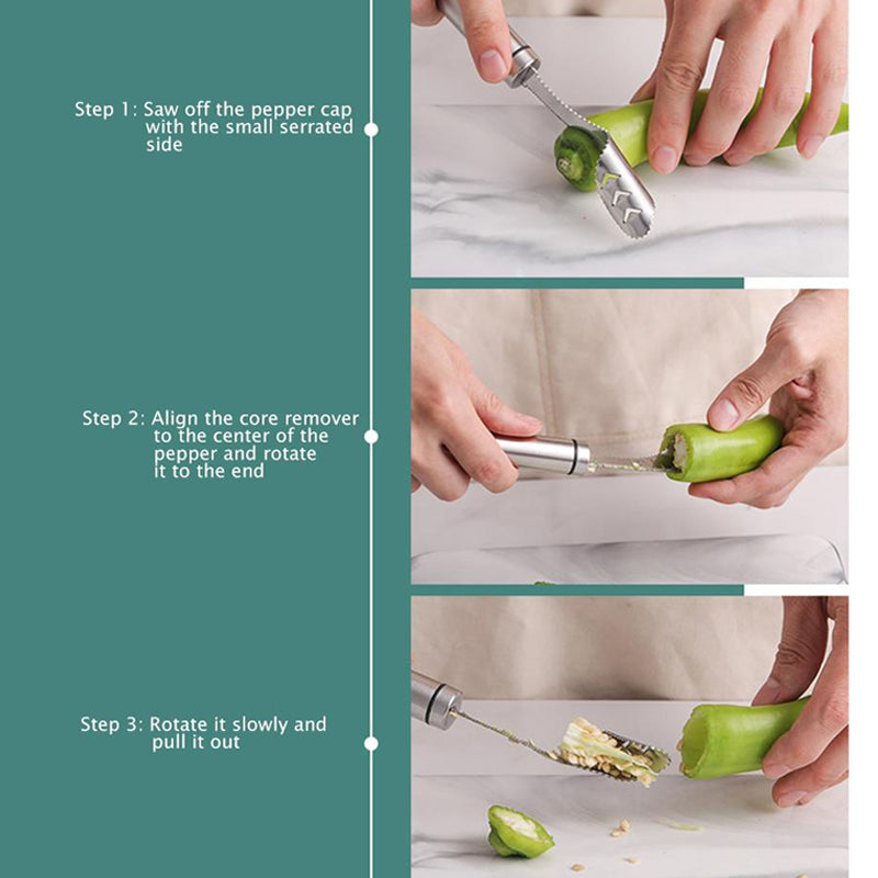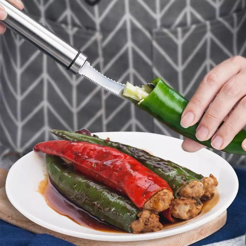 Designed with a serrated tip, it easily scrapes all seeds from the peppers in seconds.