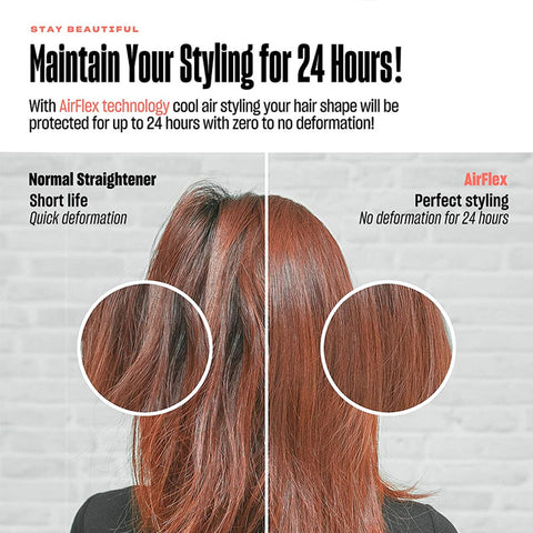 Revolutionary new airflex technology: Featuring revolutionary new Airflex technology. It expels cool air through small vents, locking the style in for a lustrous, salon-like shine without damage for better burn protection.