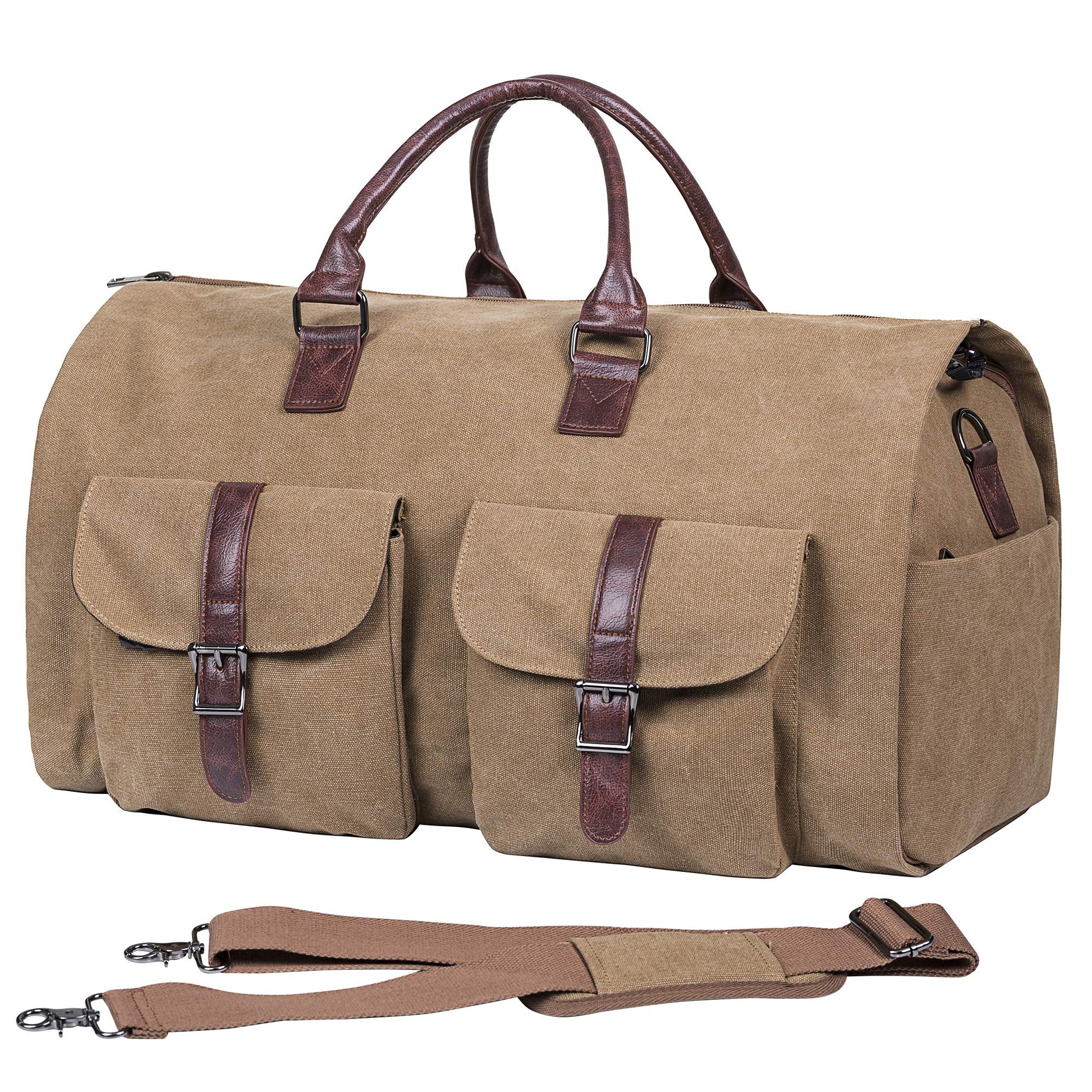PREMIUM MATERIALE: Laget av høykvalitets vanntett PU-skinn eller lerret, noe som gjør kofferten helgeveske veldig stilig og teksturert. Den leveres også med en avtagbar og justerbar skulderrem, spesielt designet for langvarige reiser, forretningsreiser, helgeturer.