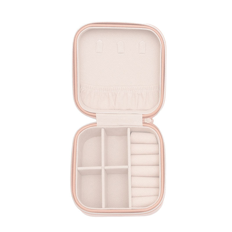 The Jewelry Box is highly functional, and was thoughtfully designed to carefully organize each of your essential jewelry pieces when you're on-the-go. With necklace hooks, ring/ earring mounds, an elastic pocket and interior compartments, you can travel knowing that all your jewelry is stored beautifully and tangle-free. The soft, suede interior keeps your jewelry safe and scratch-free.