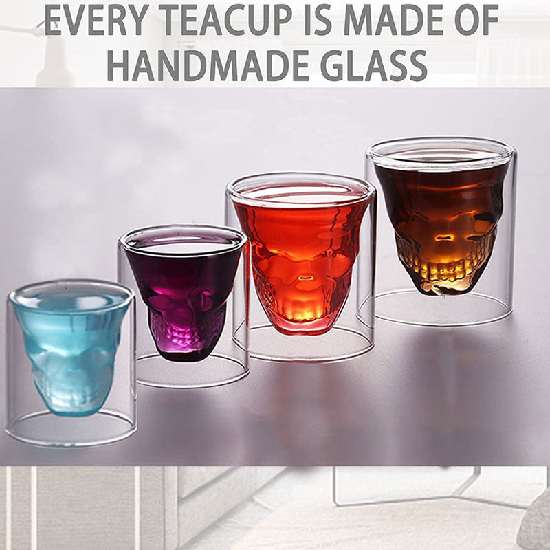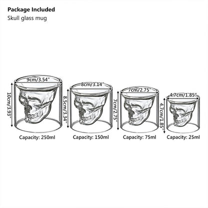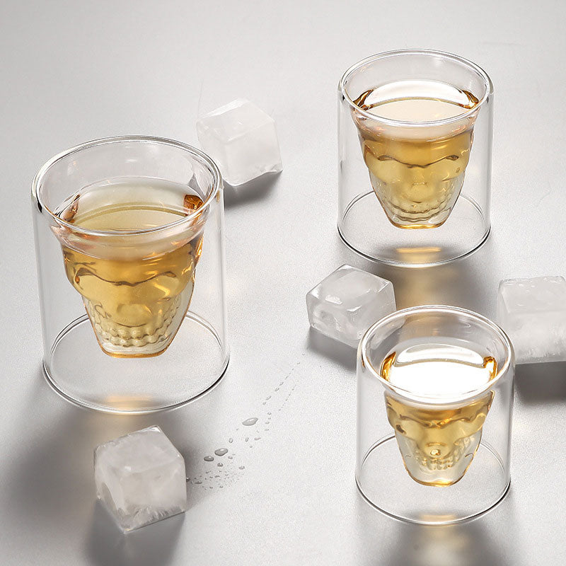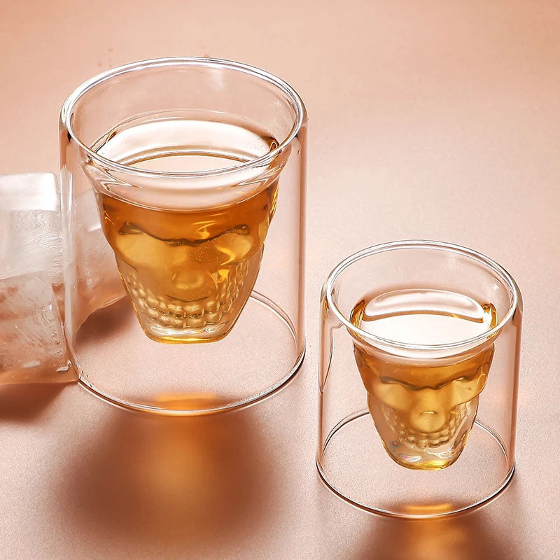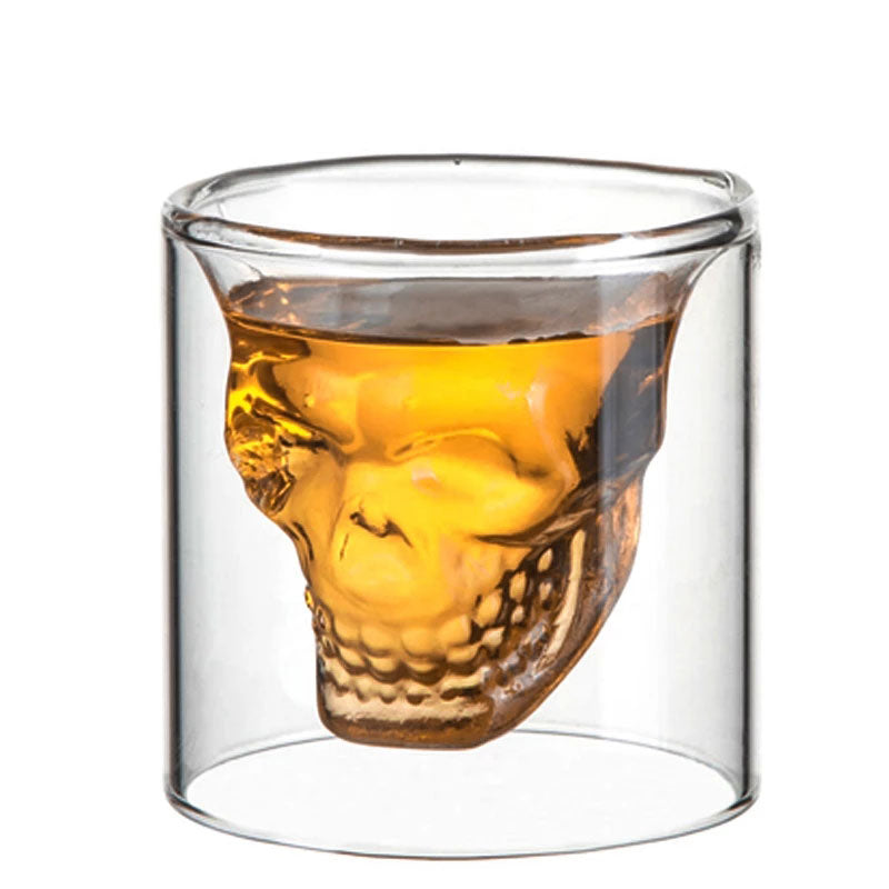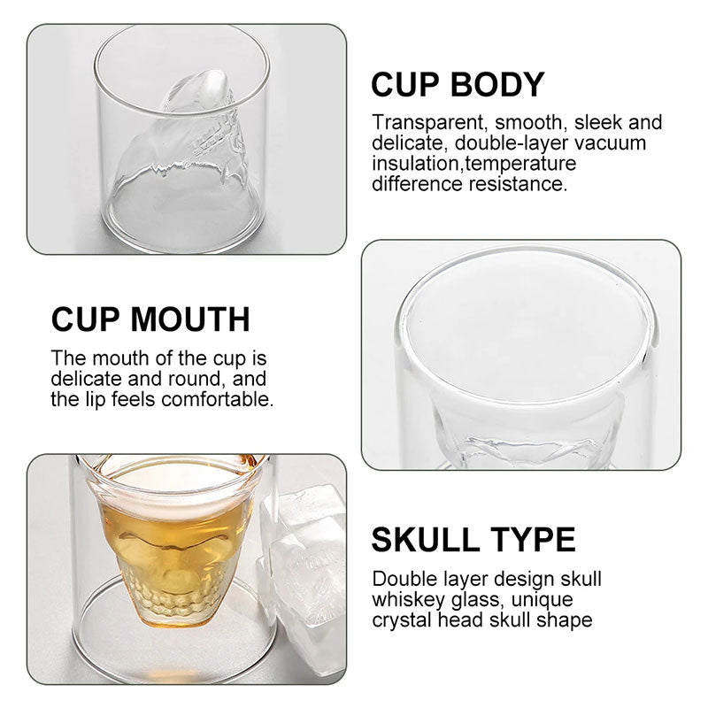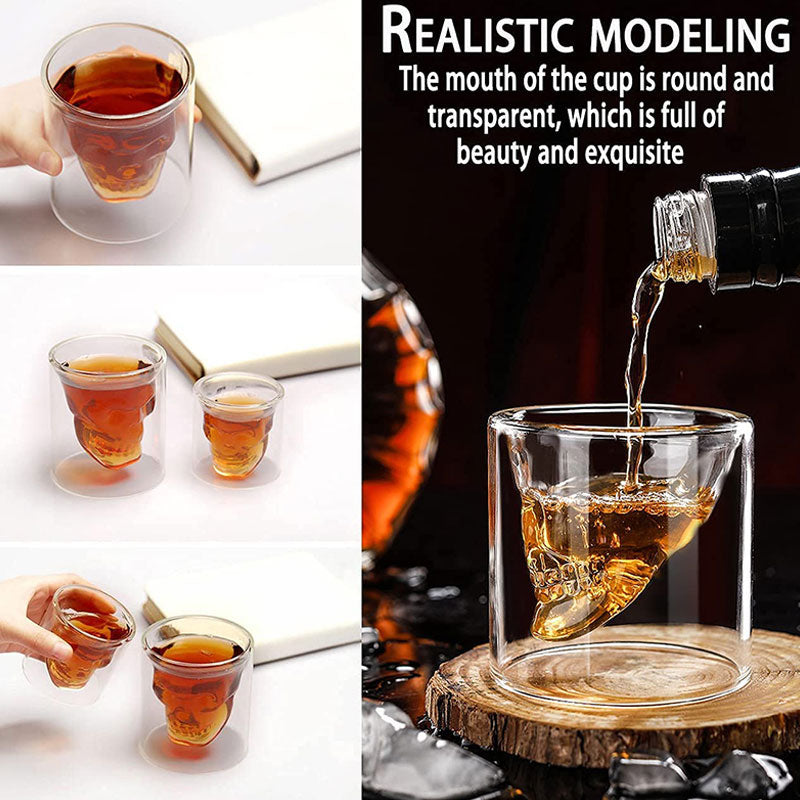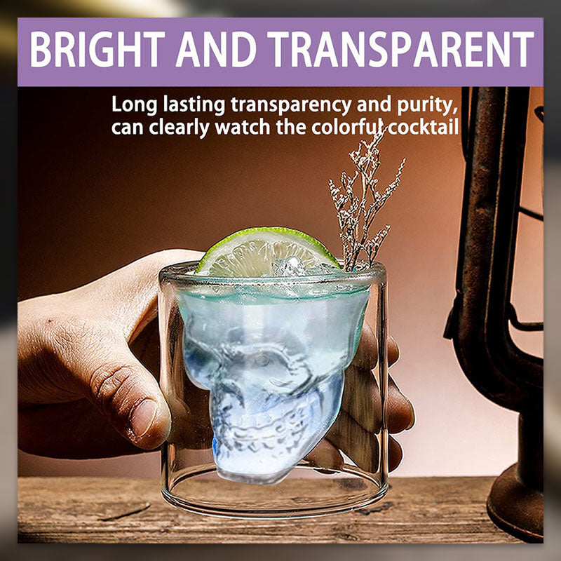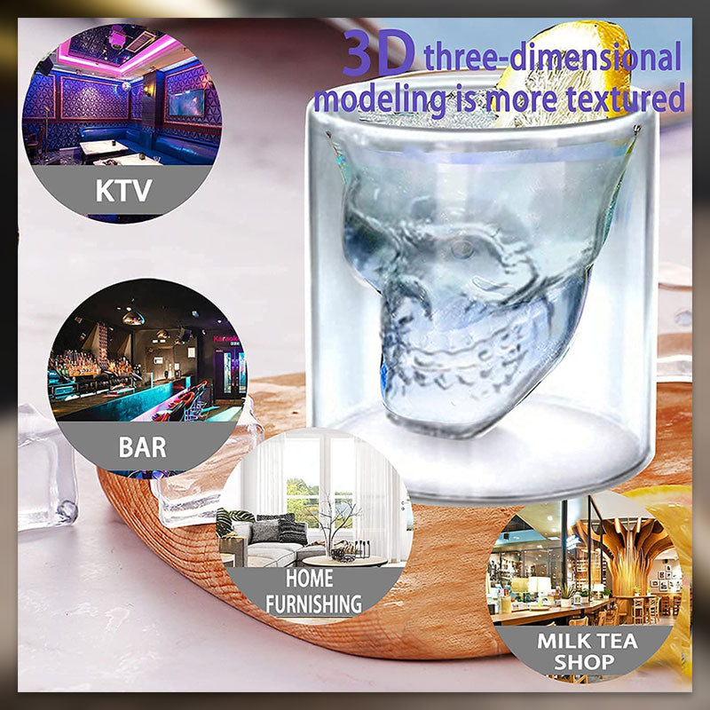 💀🍻 Unique Skull Design Double-layer design skull whiskey glass, unique crystal head shape, the inner wall and bottom are separated, so that various beautiful liquids are suspended in the air, creating an optical illusion, giving a wonderful feeling of surprise and high end feel.