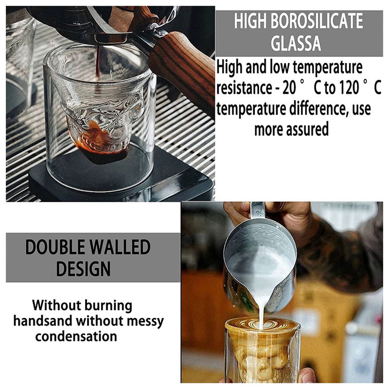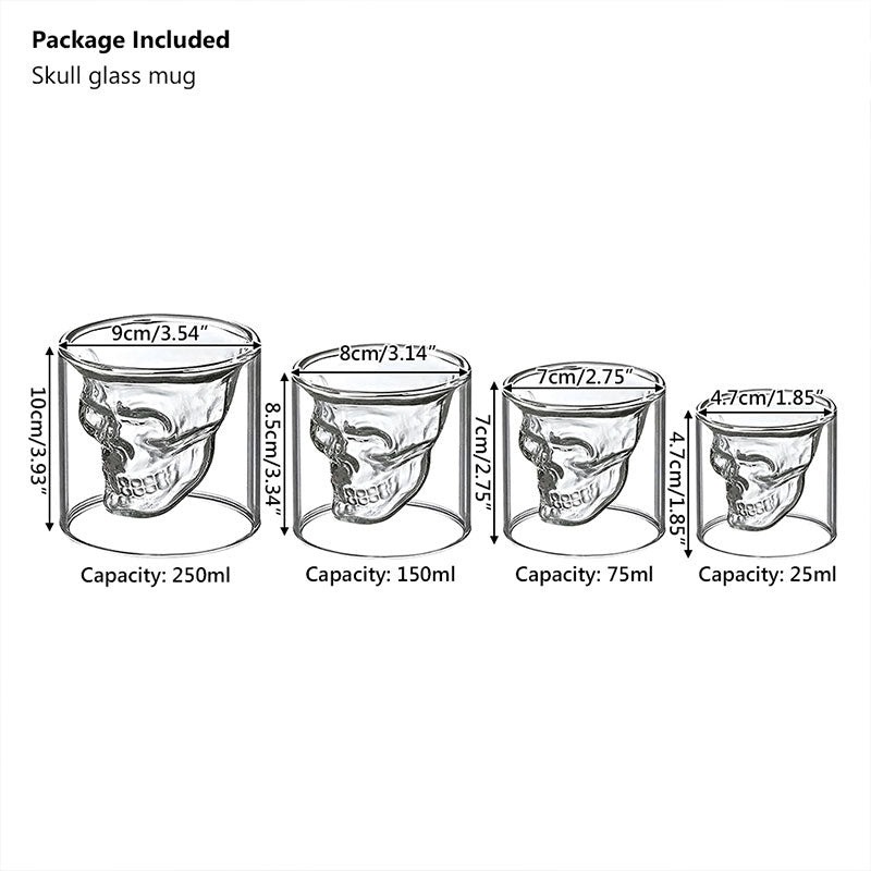 💀🍻 Double Layer Design and Insulation Personalized Crystal Drinking Glass for Wine Vodka Compared with ceramic cups and single layer glasses, double layer glasses can keep your drinks at higher and lower temperature. Double-layer thermal insulation design, no longer have to worry about hot hands.
