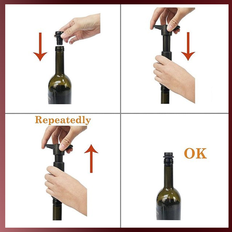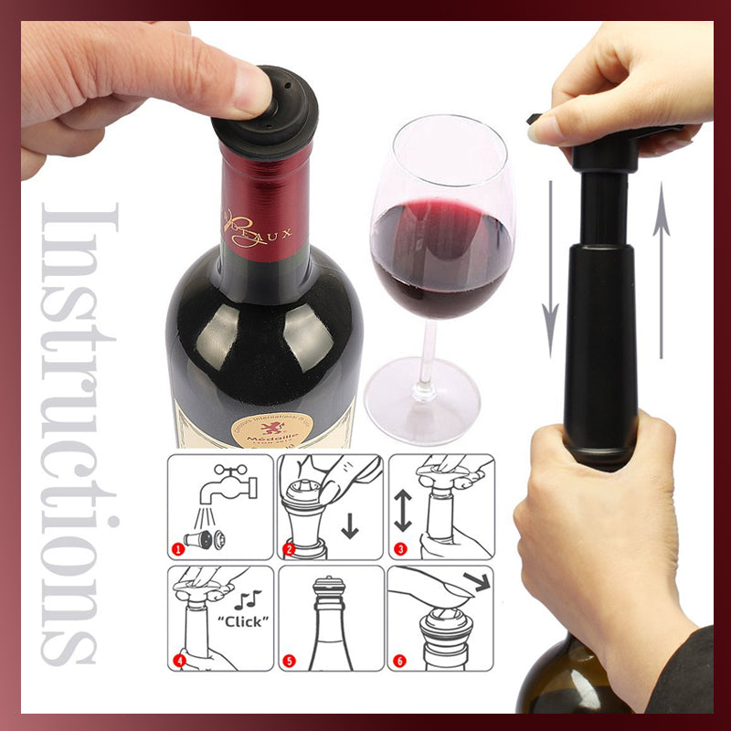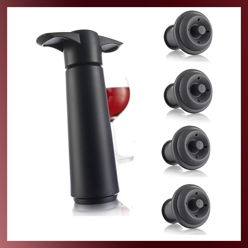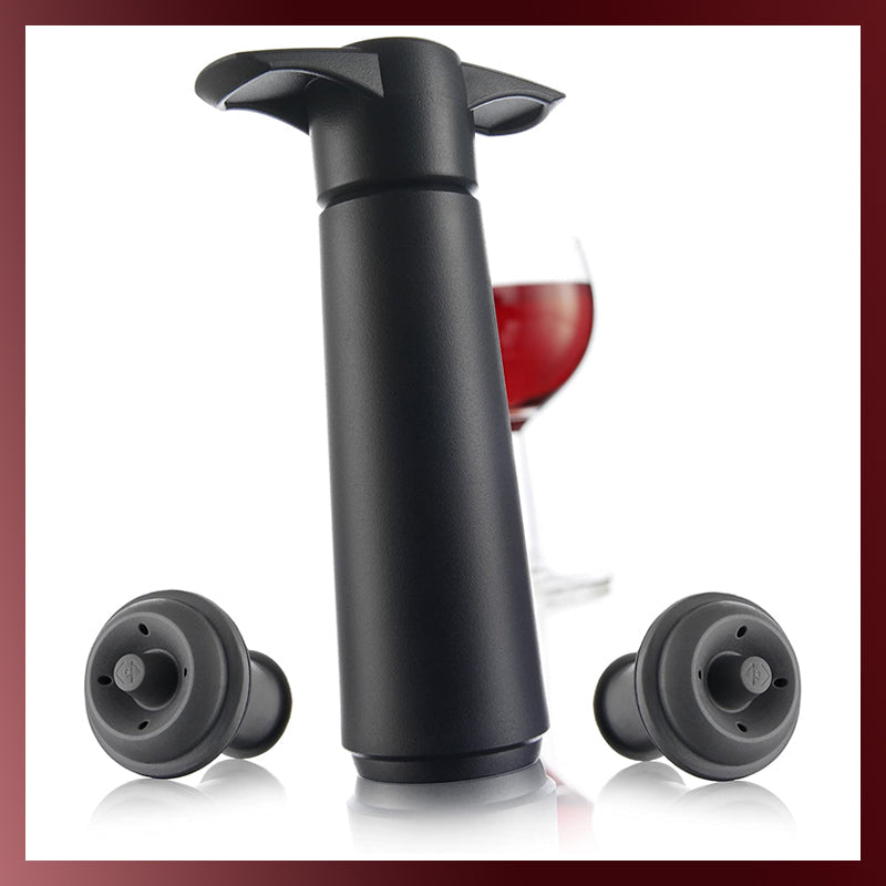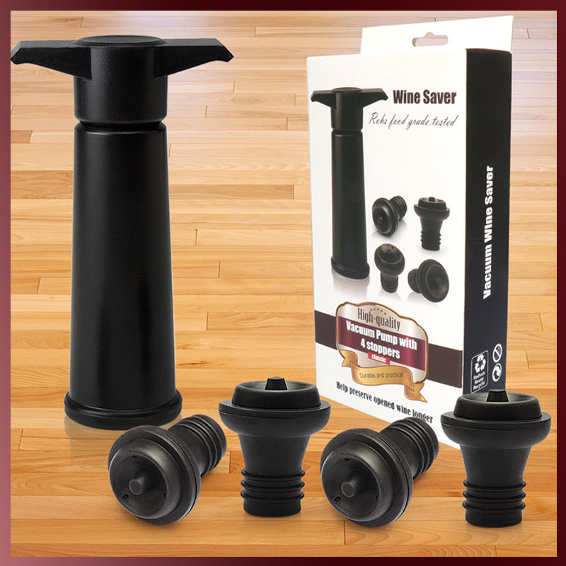 The Wine Saver is a vacuum pump, which extracts the air from the opened bottle and re-seals it with a reusable rubber stopper. 🍷
