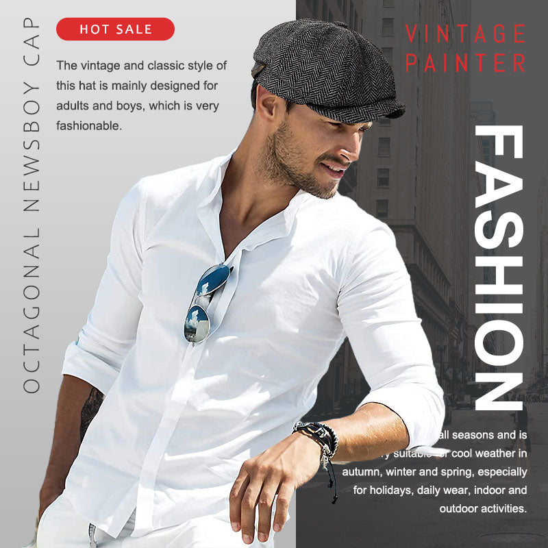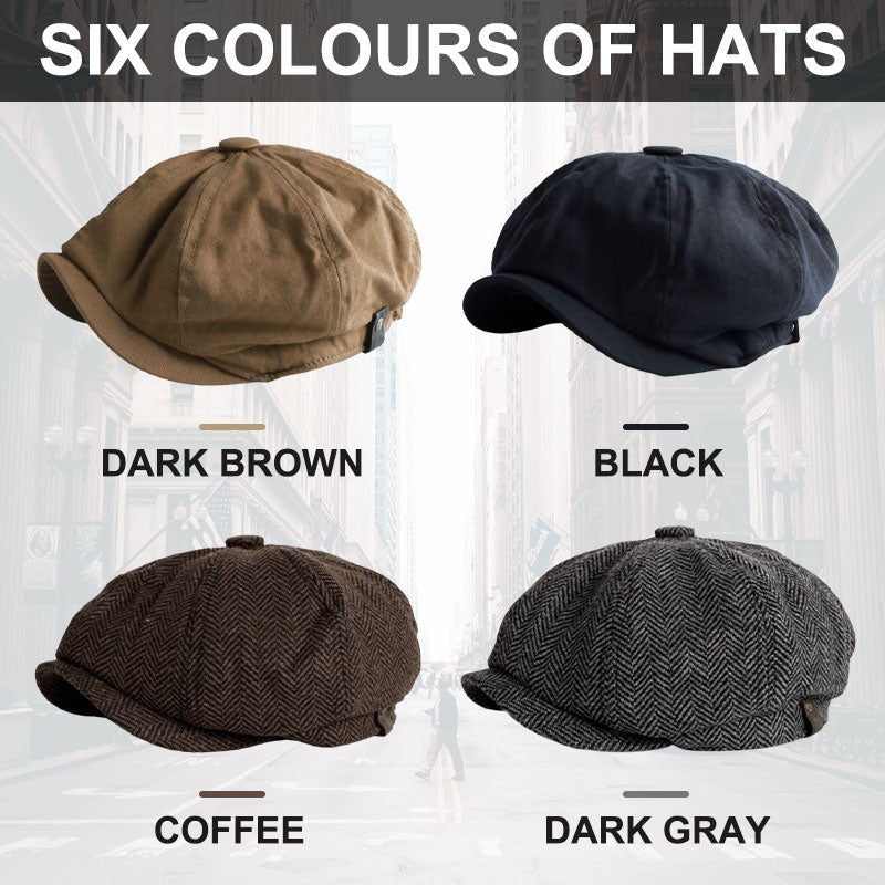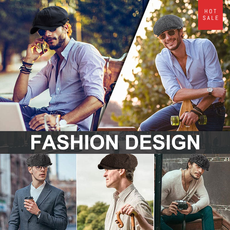 NEWSBOY CAP: Simple but not simple design, the beauty of simplicity is becoming more and more popular. Featuring eight-panel construction, classic styling, and custom lining. The retro-inspired design of this hat is one of the most popular today, and it also has a small metal button on the side as an accessory.