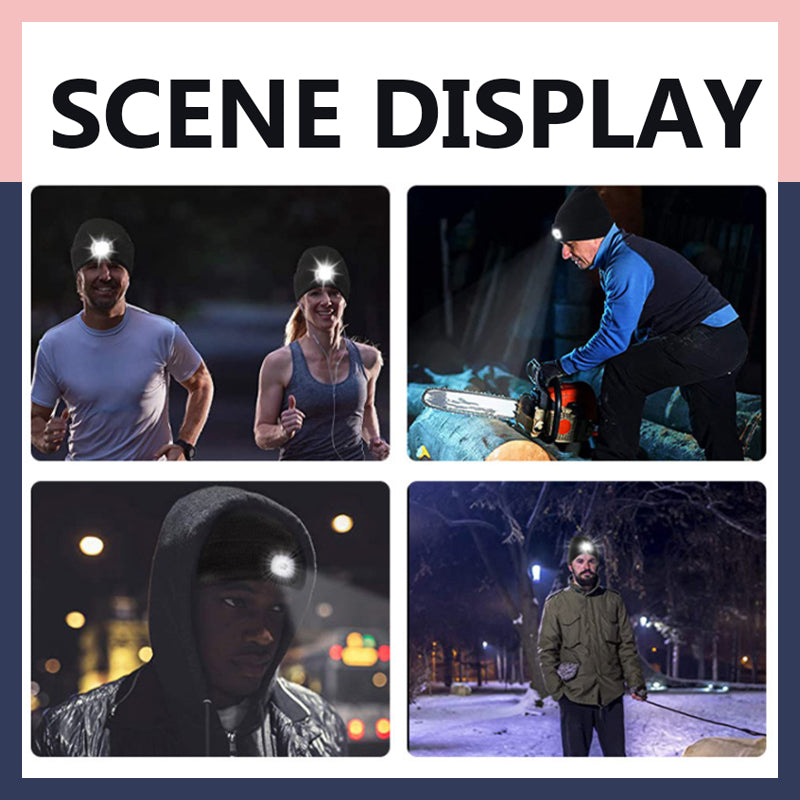 Upgraded LED Beanie: This wireless bluetooth beanie has 5 bright rechargeable LEDs with upgraded 3 adjustment modes: 50% brightness, 100% brightness, red and blue emergency lights, you can adjust according to Choose from different brightness levels for the environment. Atmosphere or in an emergency use the red and blue emergency lights. Perfect for everyone who loves the outdoors.