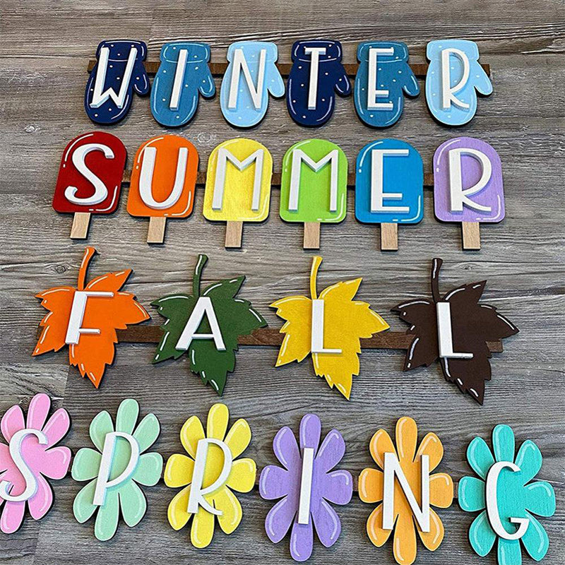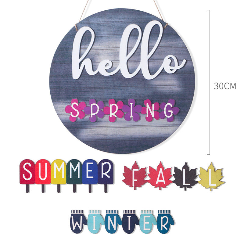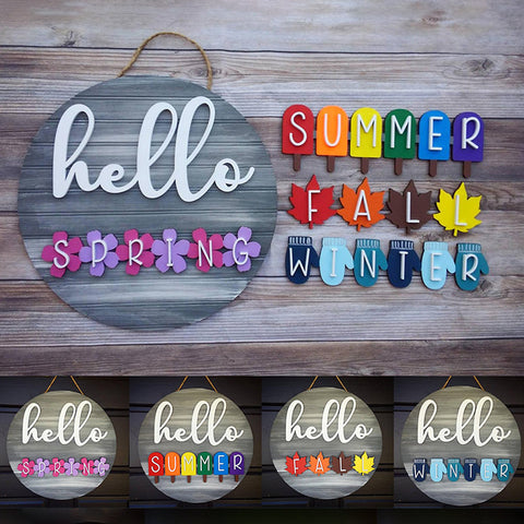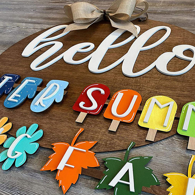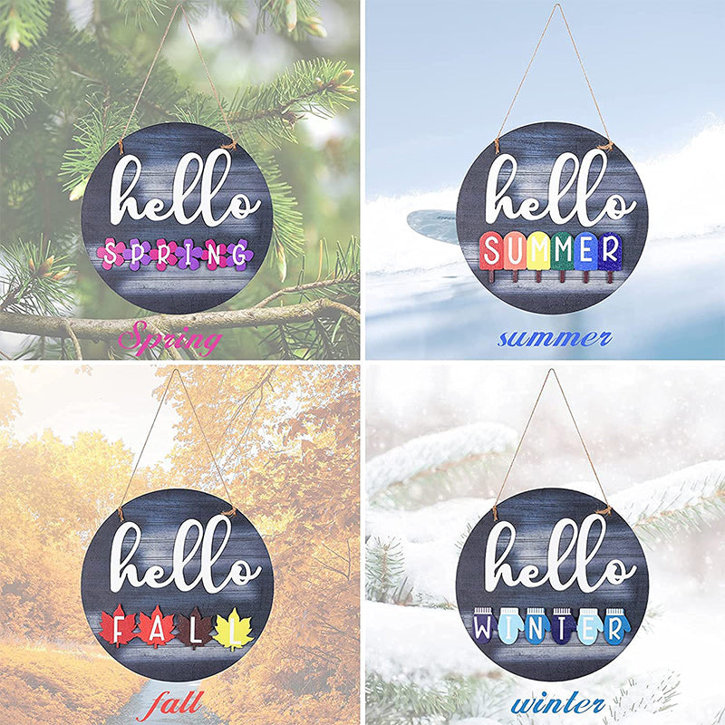 1.INTERCHANGEABLE DESIGN: The wooden door sign equipped with velcro and package includes 4 seasons of accessories: Spring, Summer, Fall, Winter, you can replace it as the season changes, make your home full of life!